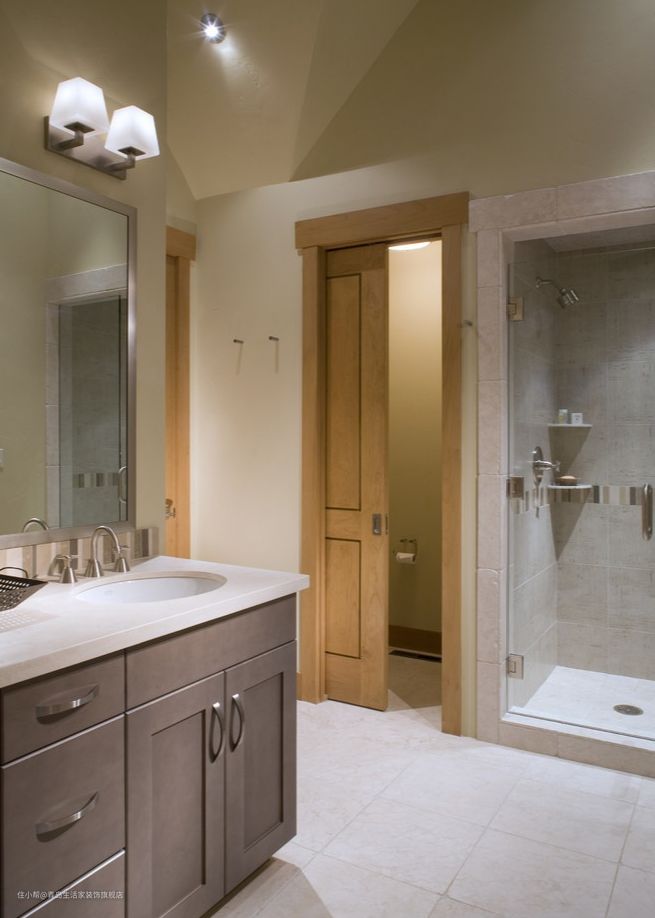 ·条件允许的情况下可以将洗手台放到外面去。这种做法完美解决了洗漱和使用马桶相互冲突的问题。没有洗手台的卫生间,在空间充足的情况下,甚至可以放下一个浴缸。