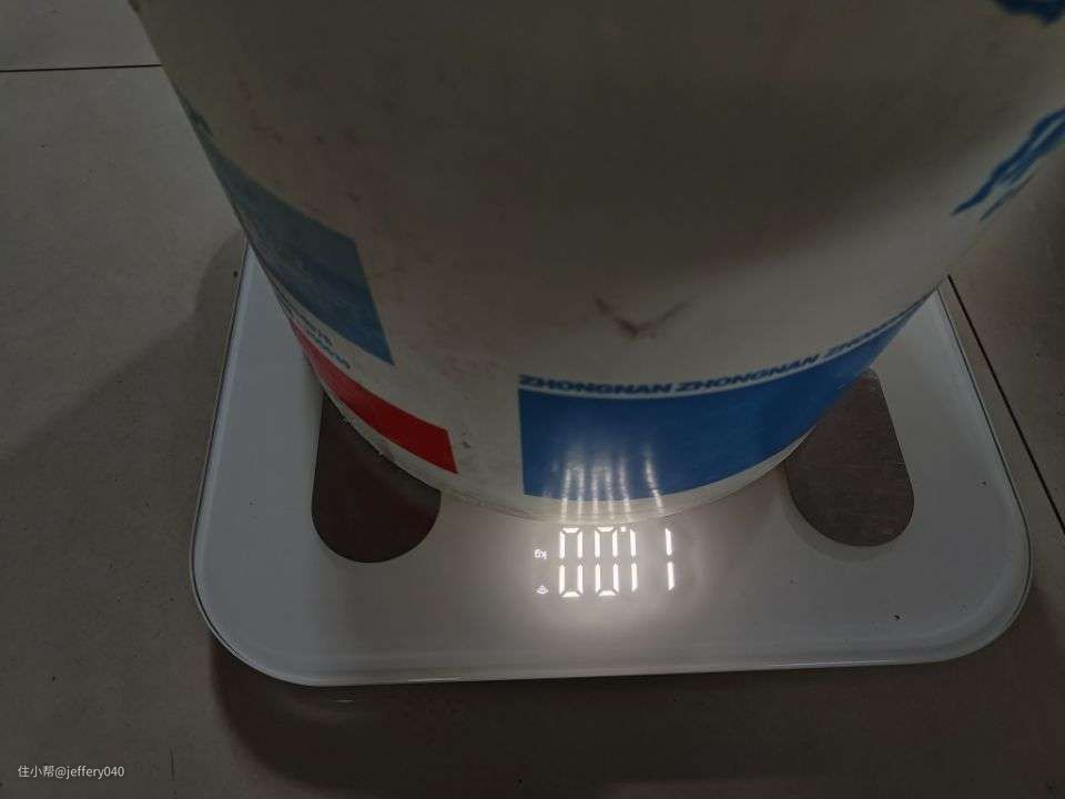用水方面,我用重量来换算,这里是11KG,这个桶差不多1KG,那么水又红了10KG也就是10L