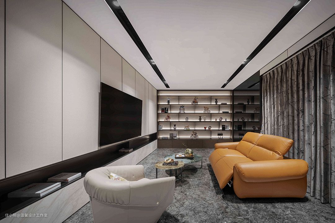 橙色吧椅带来跳动的色彩,为整个空间带来深浅层次细节的变化和趣味性。