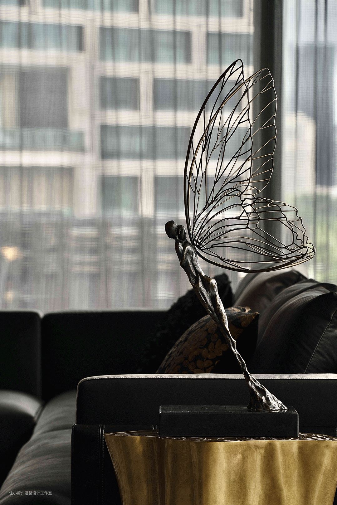 边几上的摆件名为《化蝶》,念着那片广阔的蔚蓝,历经涅槃,冲破束缚,就这样翩翩起舞奔向自由,拥有着美好的寓意。
