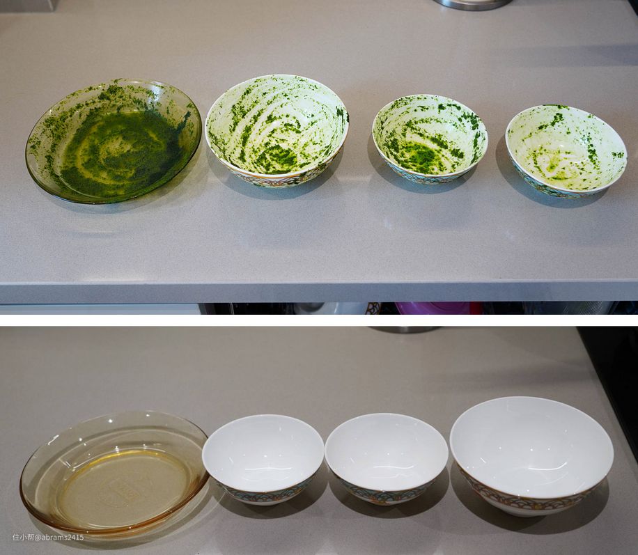 ▲有三明治水流和变频电机输出50000Pa水流加持,即使很难洗的顽固菠菜汁、蛋白质碳化炒锅,它们的正反面都能清洗的干干净净。