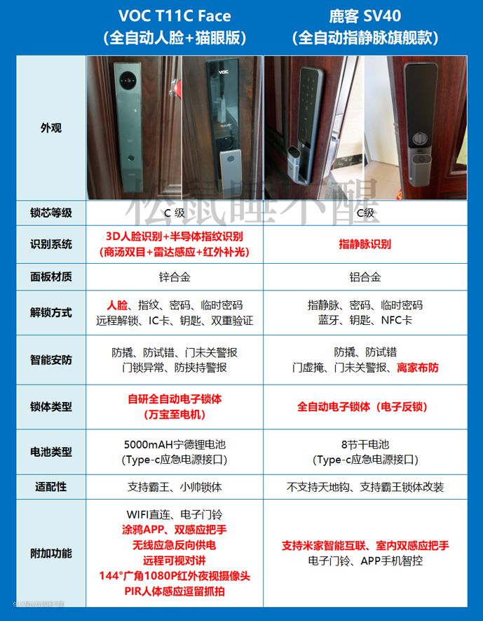 功能款目前性价比较高的型号是“VOC T11c Face”以及“鹿客 SV40”,这两款都能照顾到指纹识别障碍的成员。