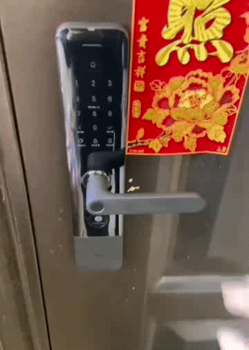 我们开始说到的“执手式”指的就是半自动智能锁,每次开门需要下压把手,关门后上提把手上锁,属于最基础的一类智能锁,操作如下: