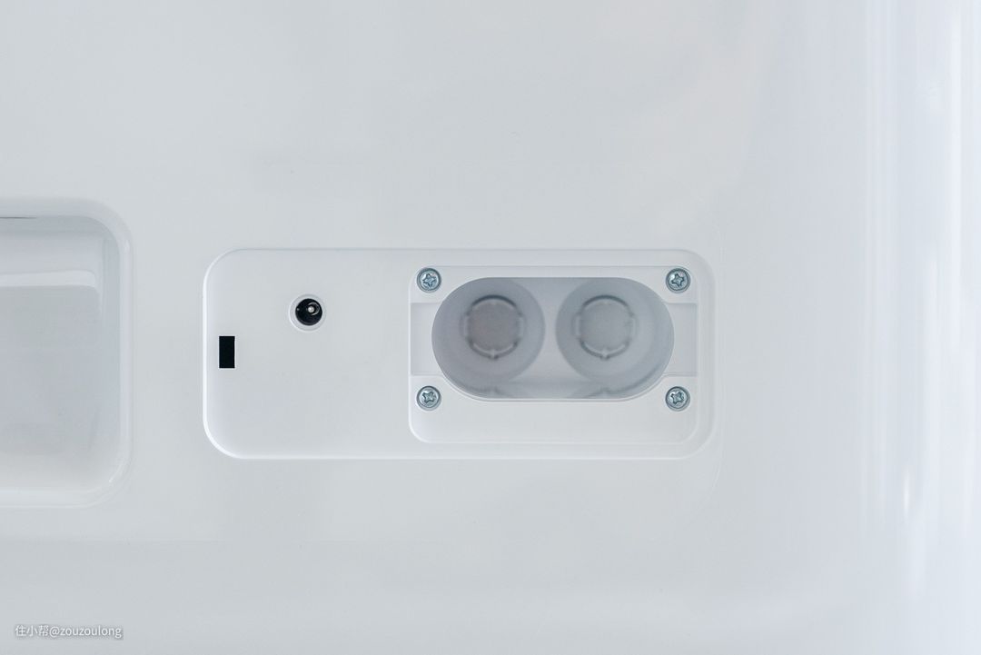 基站后背盖板打开就可以看到上下水预留口,如今上下水件是非常成熟的了,安装也很简单(官方有配套的上门安装服务,想自己动手也不是不行),我的云鲸J2上下水用了这么久没有任何问题。