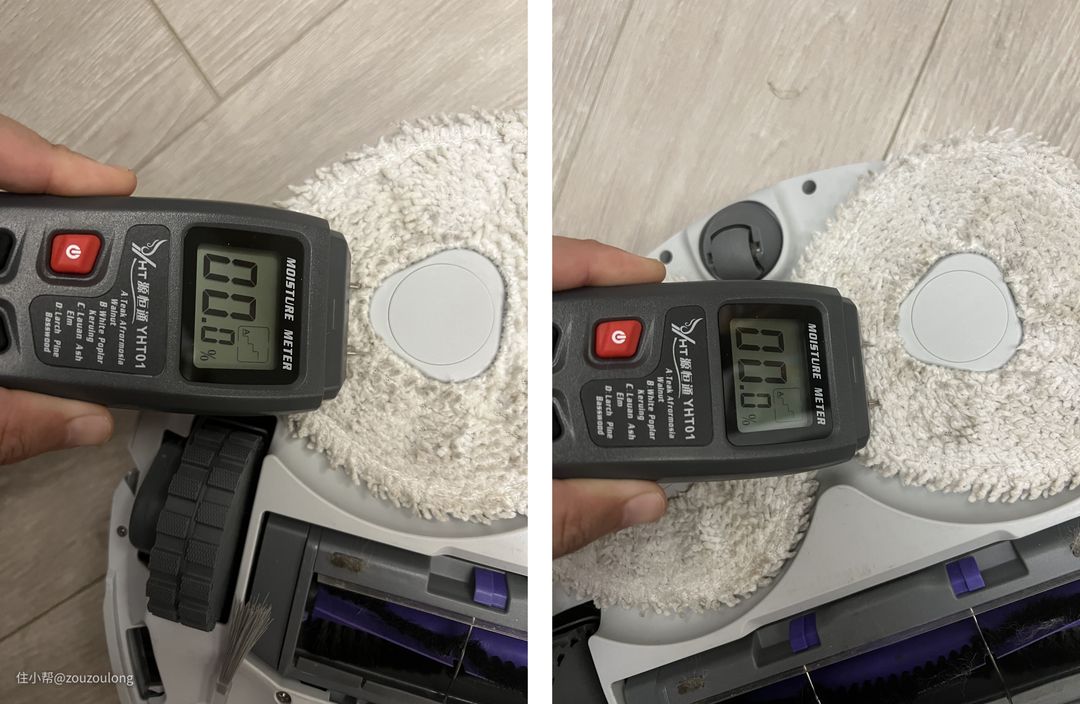 得益于烘干的设计和优化,最近这两代云鲸的烘干效果是显而易见的,选择默认的智能烘干模式,几个小时下来,拖布是一点水分都不剩了。