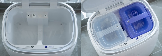 基站自然继承了J2基站的优点,是支持自动上下水以及自动添加清洁剂的,清水污水箱材质和结构做了相应的调整。