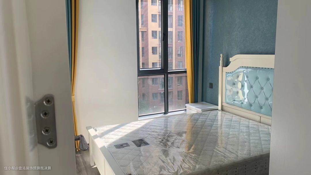 卧室空间我们做的相对简单很多,墙面我们是乳胶漆调色处理,地面是木地板,整体很简单舒适。