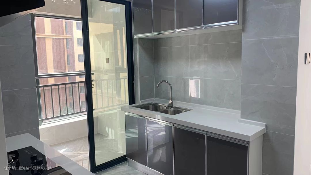 厨房我们选择的灰色调,厨房我们做了两排,很好的满足了功能需求。