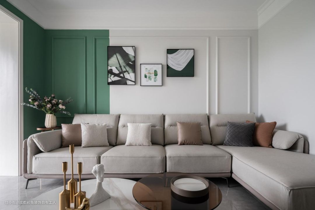 所以如果太过纠结客厅背景墙刷什么颜色,在琳良满目的色盘中挑花了眼,不如先挑选好沙发,因为沙发的色彩没有那么丰富,简单挑选后就可以根据沙发的颜色去匹配背景墙的色彩。