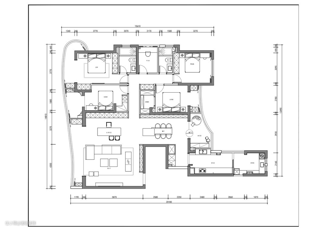 218㎡的面积刚刚好,但空间划分比较零碎。很多堵不合时宜的墙分割了房间,导致房间不能得到最大程度的使用。业主有一个儿子,喜欢科幻,父母希望给儿子充满想象的童年。设计师测量考察,了解客户需求后,进行了针对性改造,希望家可以成为舒适的港湾。