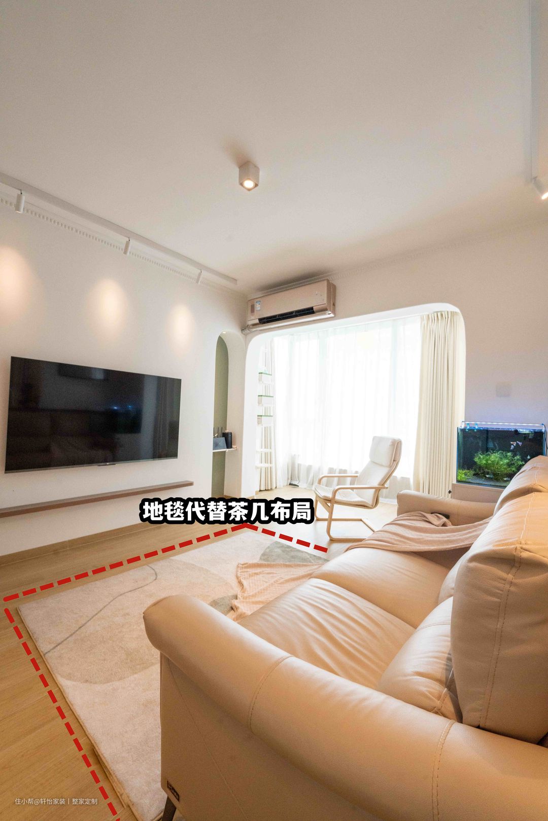 🎈其中需要注意的是:沙发是客厅的主角,沙发要选多大,取决于客厅主墙的宽度,约占主墙的3/4宽,比例最好看。