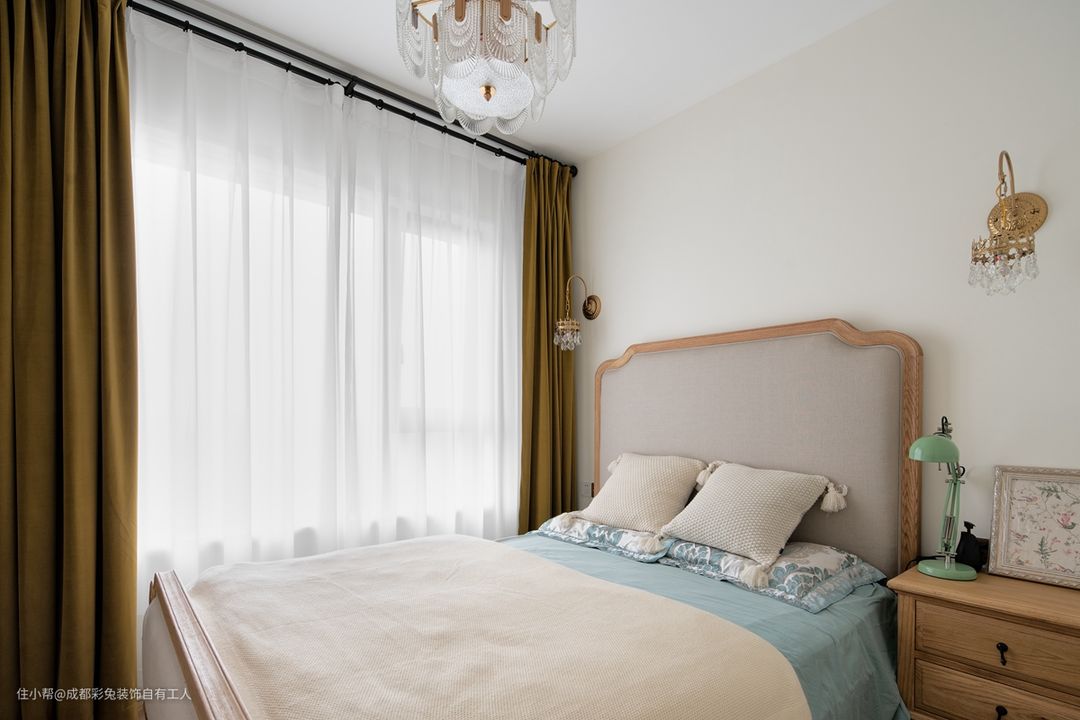 至于窗帘的大小选择,建议偏向于大窗帘,毕竟满面帘才更加的大气,更有整体感,而小帘子很容易给人孤零零的感觉,让卧室显的小气。