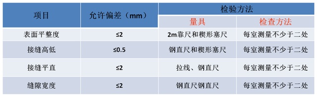 地面铺设尺寸允许偏差及检查方法