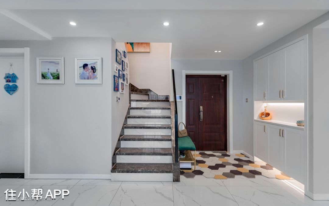 原户型是没有玄关区域的,但是业主提出需要一个放置鞋和日常小物品的入户收纳柜。