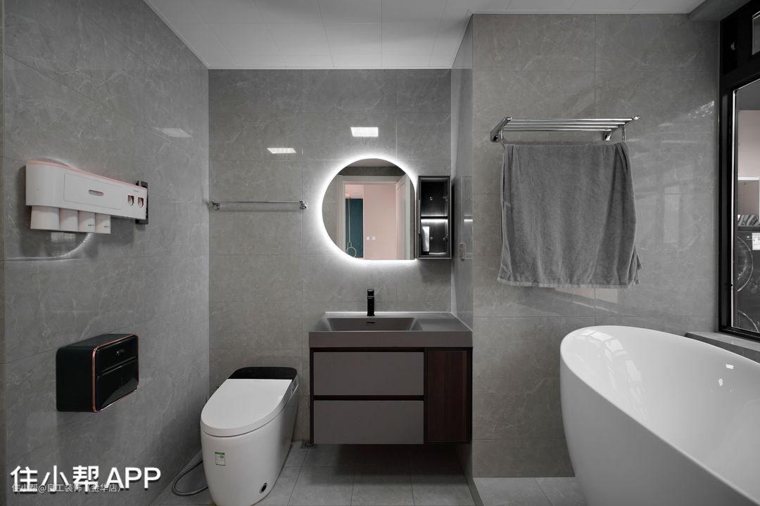 独立式浴缸仿佛是这里的主角,特意将原户型的小开窗改造成定玻,提升整体的采光通透度,让人沐浴其中就有徜徉于自然的感觉。