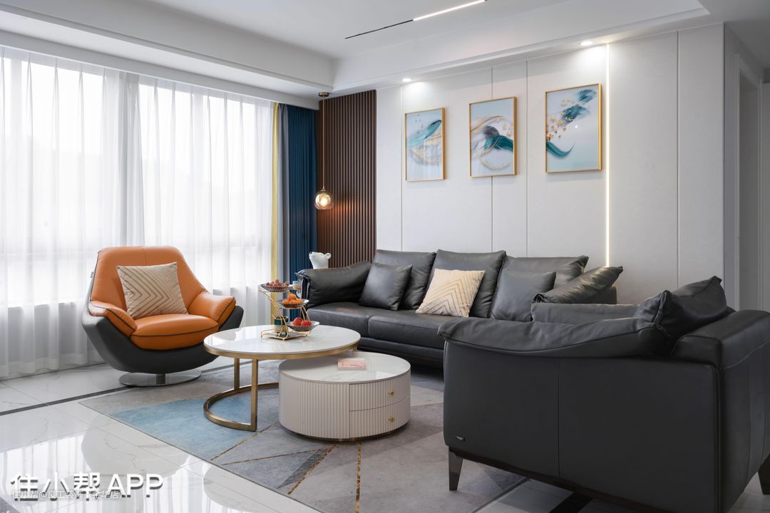 客厅撇弃了复杂的线条构造,从吊顶到墙体都维持了最简约的线条。将原有的飘窗敲掉,拓宽室内面积,增强采光度。