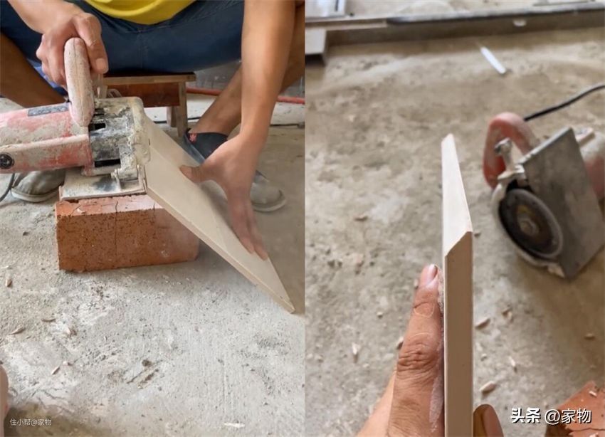 而海棠角需要先对瓷砖进行切角处理,然后再进行铺贴。铺贴过程要细致谨慎,否则整体效果会大打折扣,这对瓦工师傅的手艺也是一种考验。