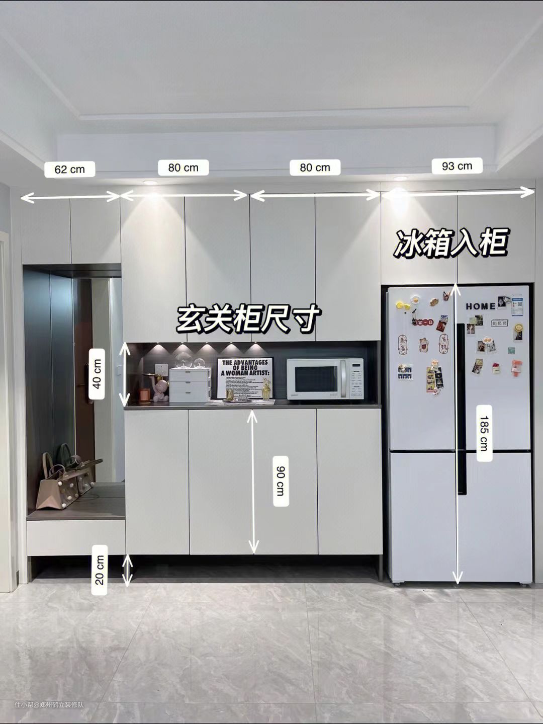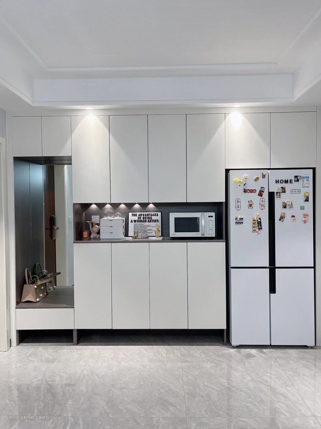 今天给大家介绍一款集玄关柜、餐边柜以及冰箱柜于一体的玄关柜体设计,既可以增加收纳,提升空间利用率,还可以让整体更加美观大气。