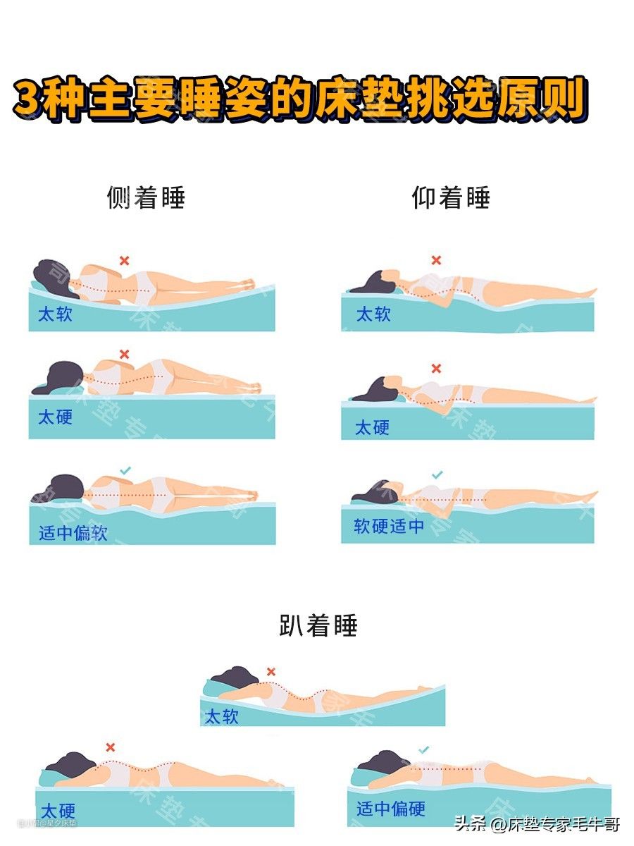 习惯侧睡的小伙伴尽量选适中偏软的,比如乳胶、记忆棉等;习惯仰睡的小伙伴尽量选适中的,比如3D纤维或者多层材料组合的;习惯趴睡的小伙伴尽量选适中偏硬的,比如精细黄麻、纯3D纤维床垫。