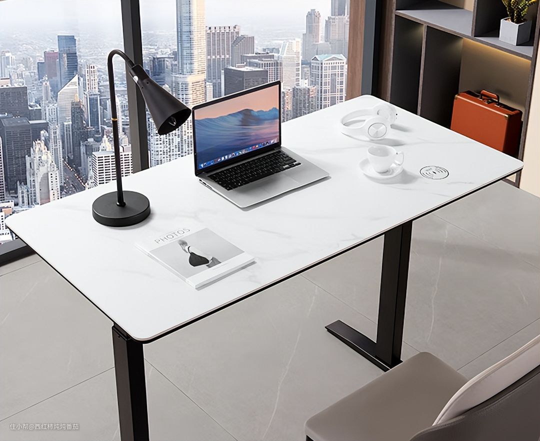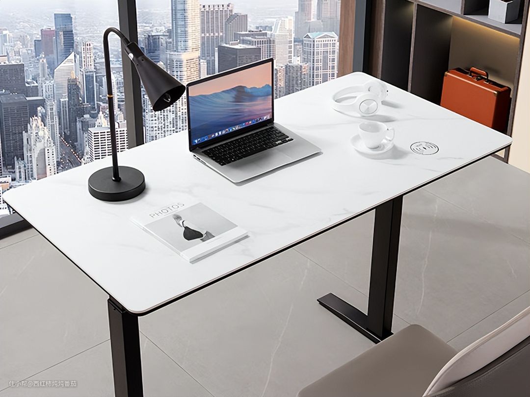 但我们把格局打开:谁说升降桌只能用木板桌面?