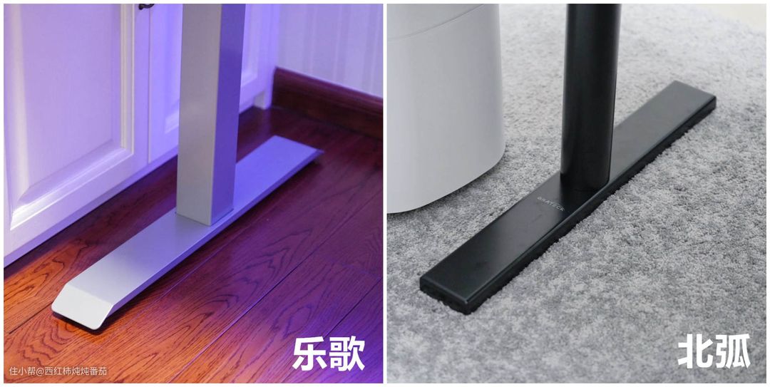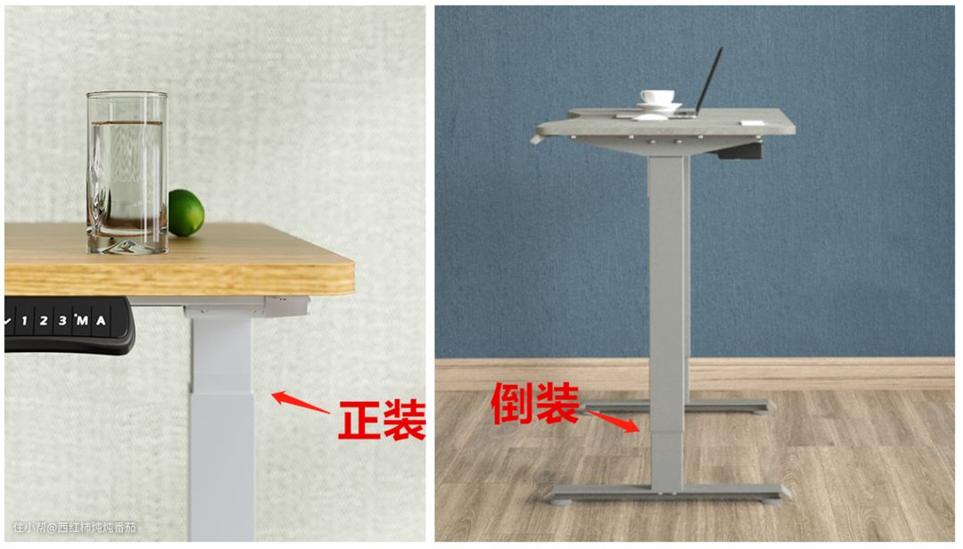 升降桌的桌腿有正装和倒装两种,乐歌、北弧这种一线品牌一般都采用正装,而一些主打性价比的电商品牌则往往采用倒装 ▲