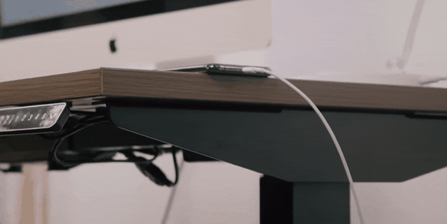 升降桌虽好,但桌面有一堆用电器需要用电,如果还是采用传统思路给桌面电器供电显然是不行的——桌面在升高过程中,极其容易扯到电线 ▲