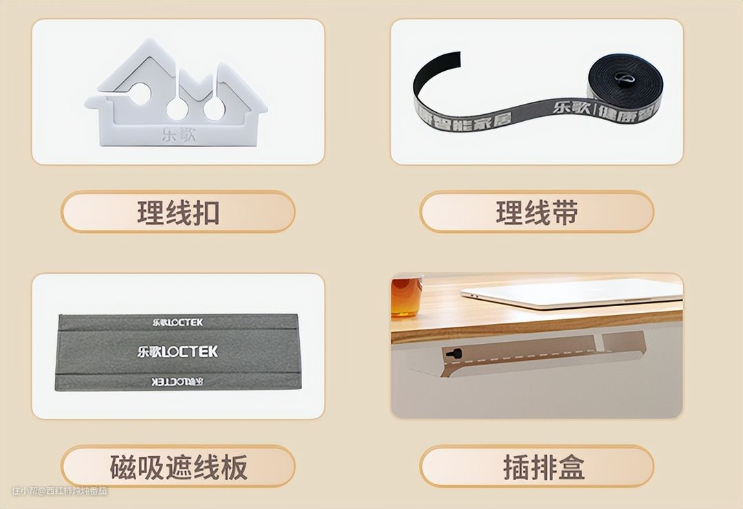 配件比较丰富,除了理线扣和理线带之外,还配备了磁吸遮线板和插排盒,比较周到 ▲