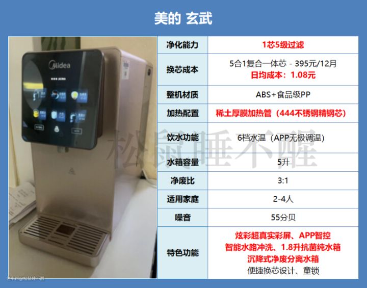 所以,水箱的容量我们要结合净废比来判断,一般2-4人家庭不要选4升以下的,相信我,每天换水会换到手抽筋。