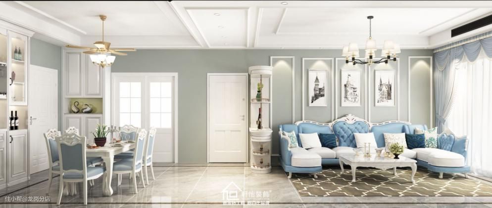 其中挂画是家庭装修中的一个装饰性设计元素,在客厅这样相对宽松的空间里,大面积留白的话,空间感难免会显得单调,比如沙发墙上,一般靠放上沙发后,上方墙面都是比较空余,那就可以利用这白墙挂上一幅精美的装饰画,整个空间既不单调又显得优雅~
