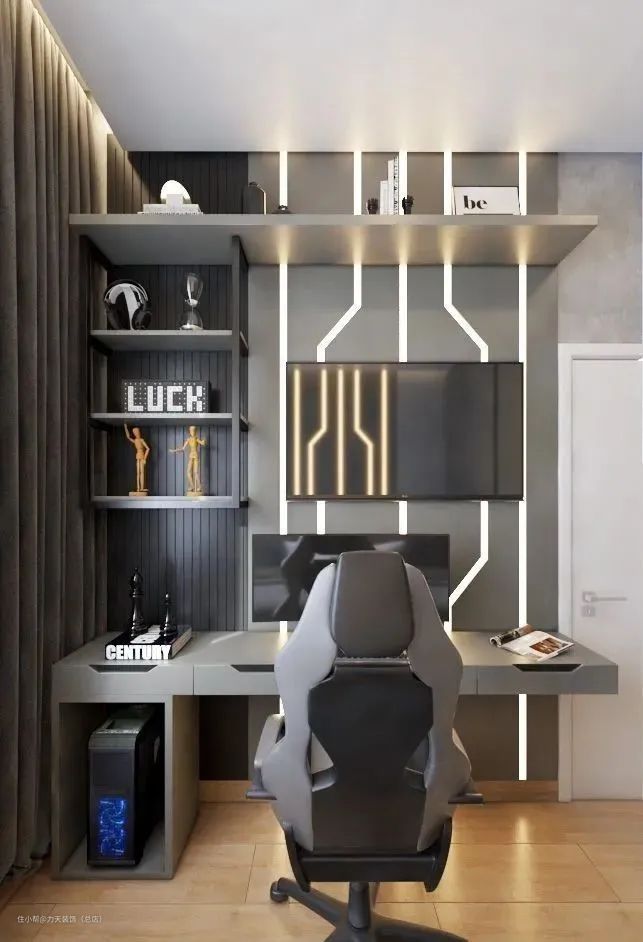 因此,电竞房设计的核心是:在满足日常所需的功能前提下,增加氛围感。