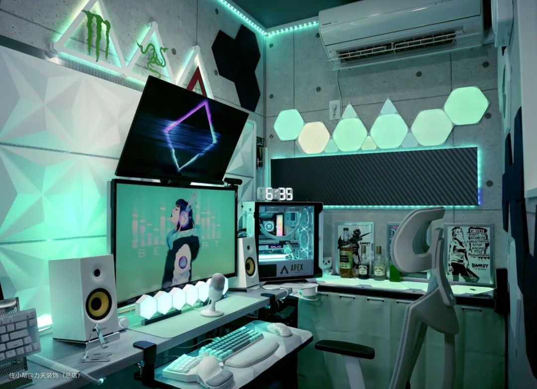 提起电竞房,很多人第一反应就是专门打游戏的房间或者某一个区域,房间配置上就是桌椅+电脑,但其实电竞房的设计,除功能外更注重打游戏的空间氛围和游戏体验,就好像电影院和在客厅放投影的区别。