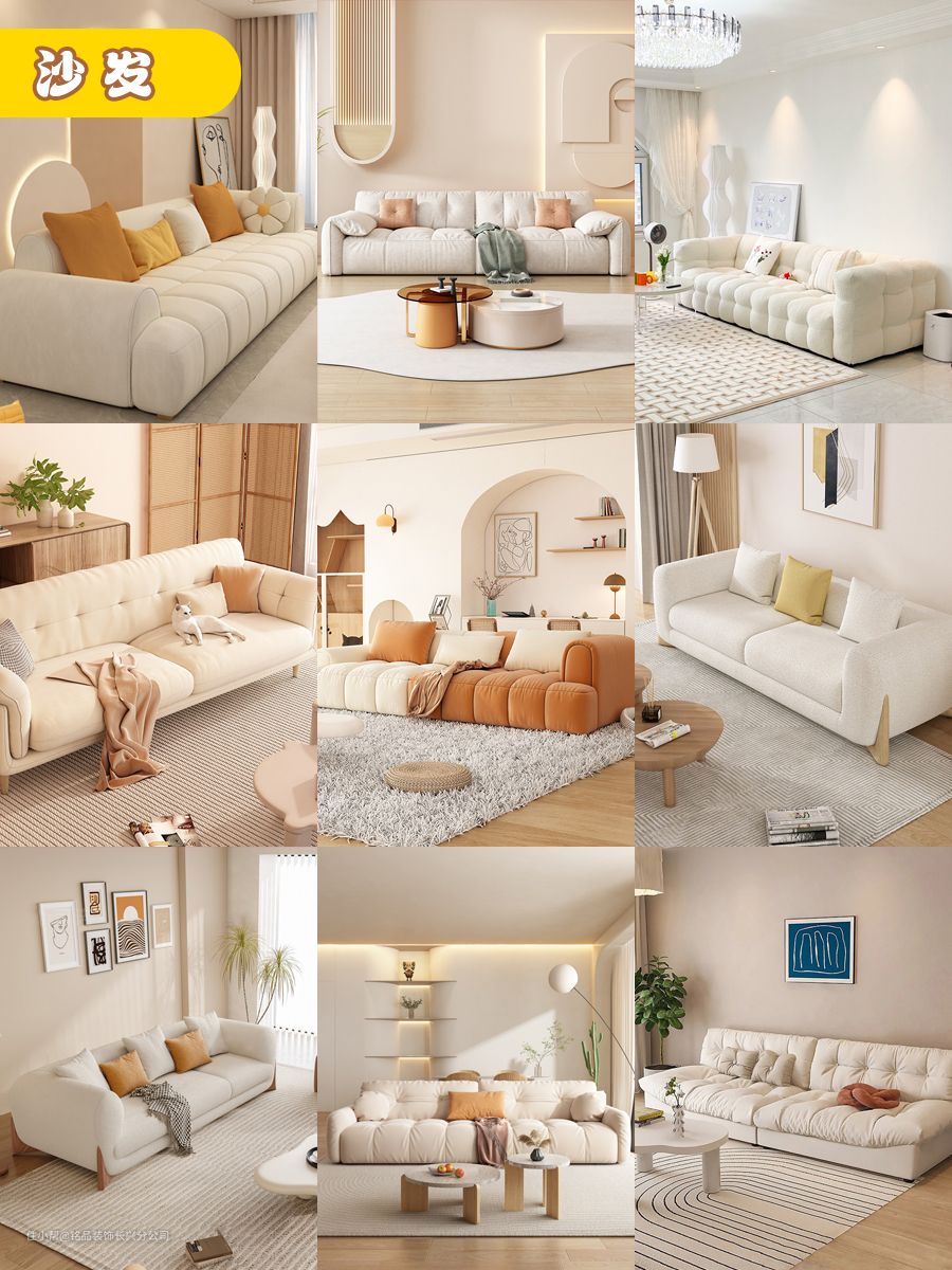 2.沙发选择上就更多元化啦,在颜色相似的情况之下,以柔软温润的几何形态为主: