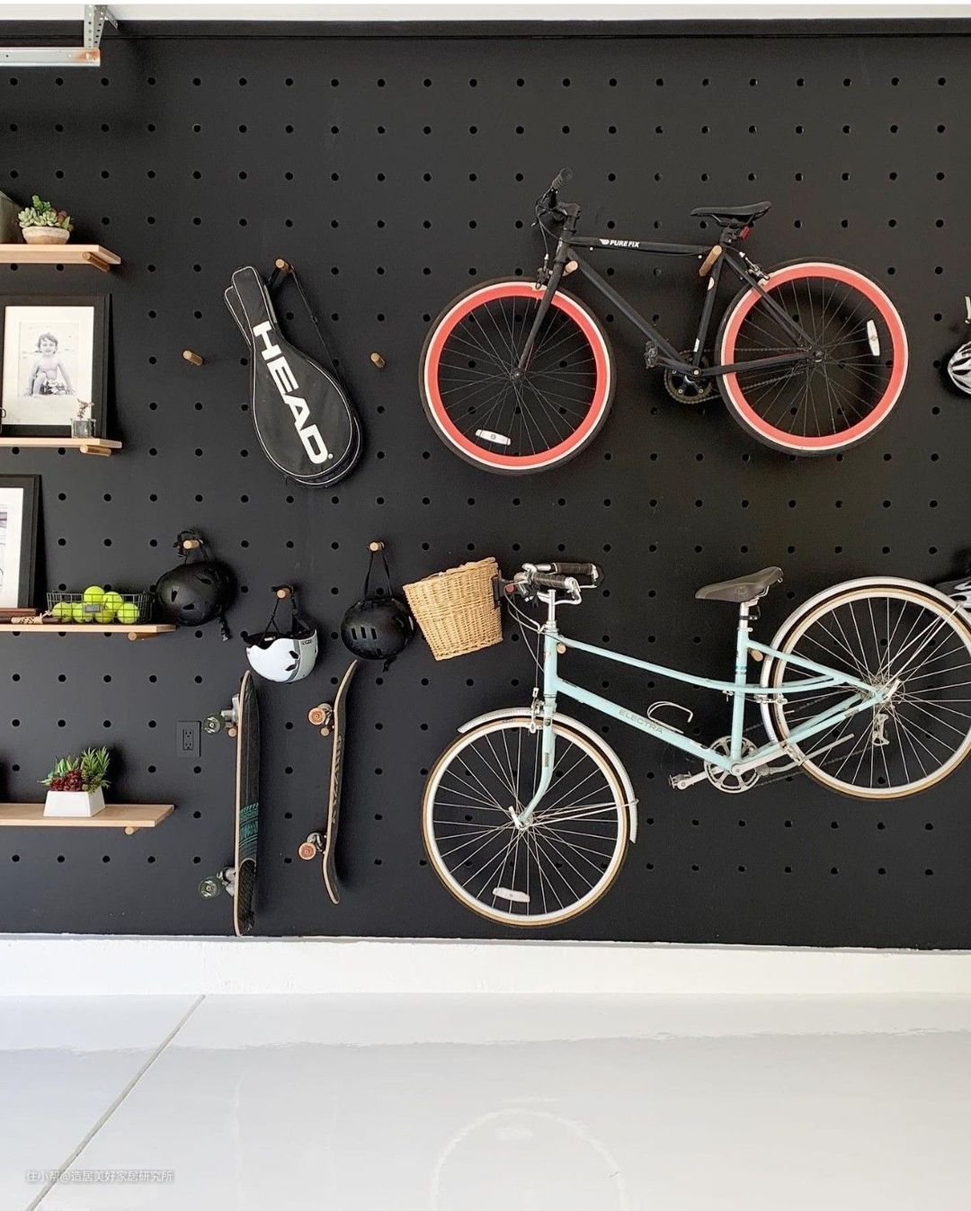 展示区可以根据空间风格来选择相对于的洞洞板和隔板,结合需要展示物品的数量,对整面墙做一个合理规划。