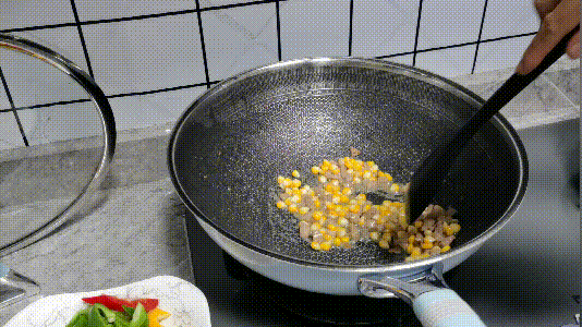 有肉有青菜才能有均衡的营养,玉米粒是我家小朗朗最喜欢的了。做菜好吃需要技巧,其实那口锅最为重要啊!