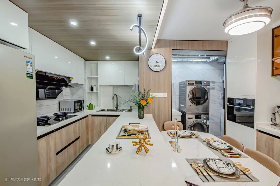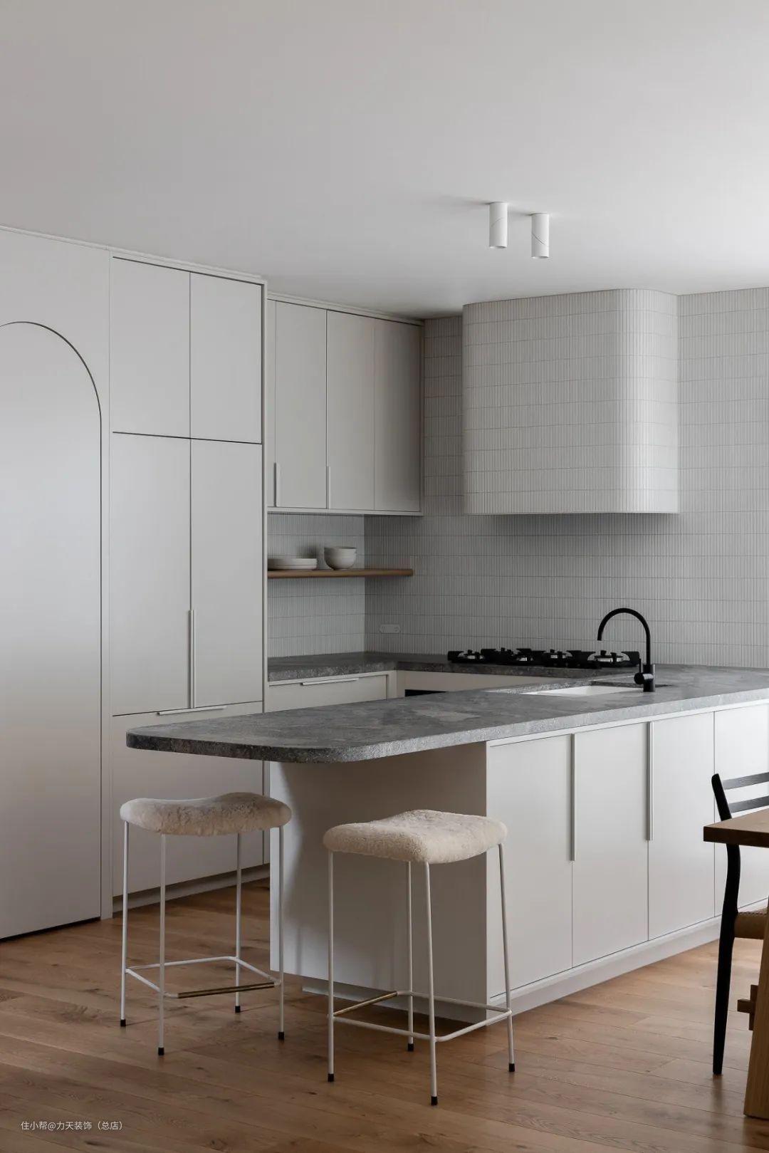 半开放式厨房即在封闭的基础上增加开放区域,在开放的基础上增加部分隔断,既能达到开放式的通透,又能分割出厨房分区阻隔油烟噪音。