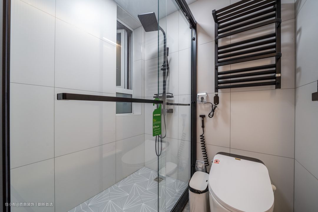 原一楼卫生间的客厅确定比较小,如果不设计干区的话,里面要容纳卫浴三件套就无法隔出淋浴房,并且会非常拥挤。