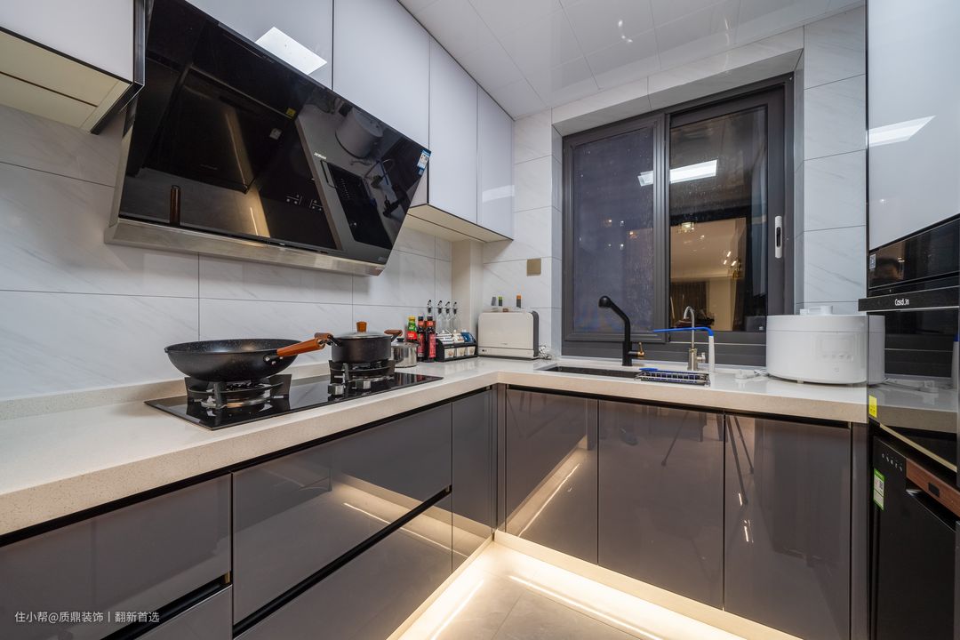U型橱柜设计,注重空间的利用,外面简约时尚,收纳也非常充足。