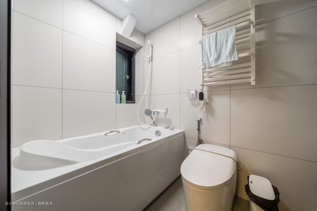 次卧的门洞改变位置后,增加出来卫生间的干区,使卫生间使用空间更加充足,不拥挤,也更便于打理。