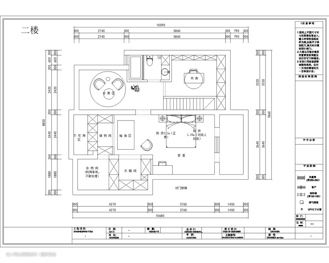 考虑到阁楼作卧室的话,因为有斜顶的关系,对于老人和小孩子都是比较不方便的,因此二楼就完全改为夫妻二人的生活空间。