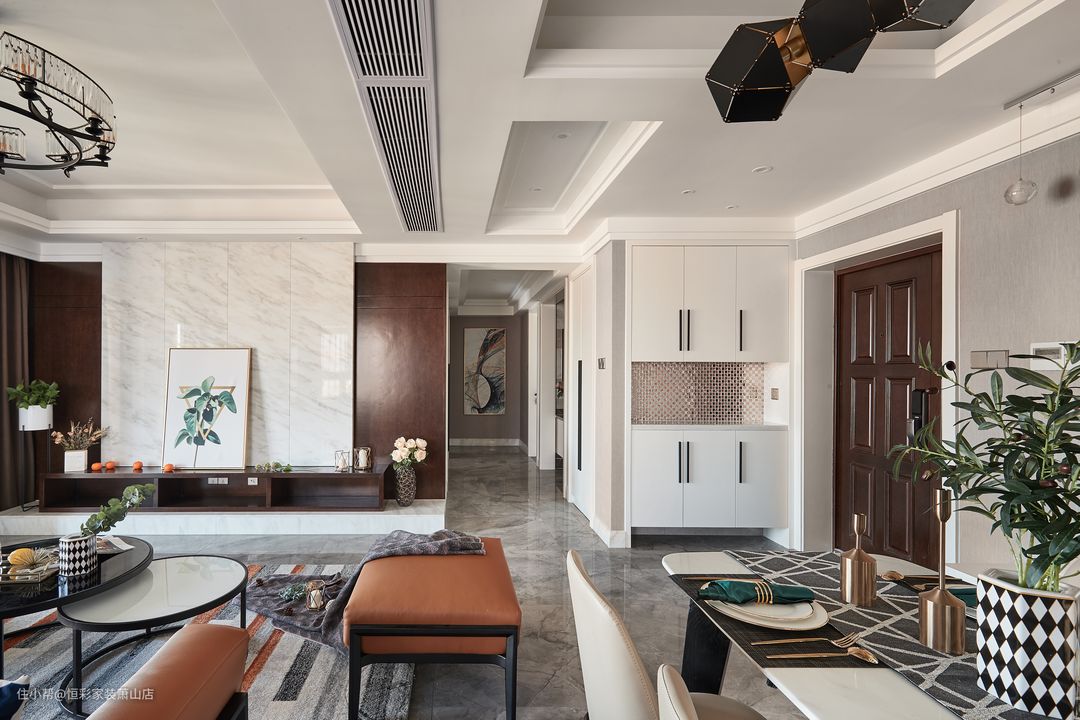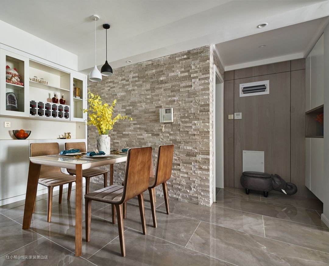 设计改造:在客厅与餐厅之间的转角处空间,做整面嵌入式玄关柜,很好地利用了转角空间。