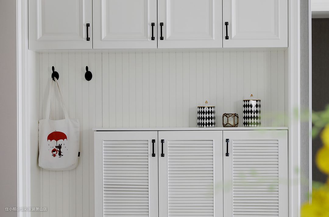 设计改造:将原始户型中较为鸡肋的入户储藏间,设置成鞋帽柜区,弥补了入户无玄关的缺陷,也使得屋主的动线更加合理。