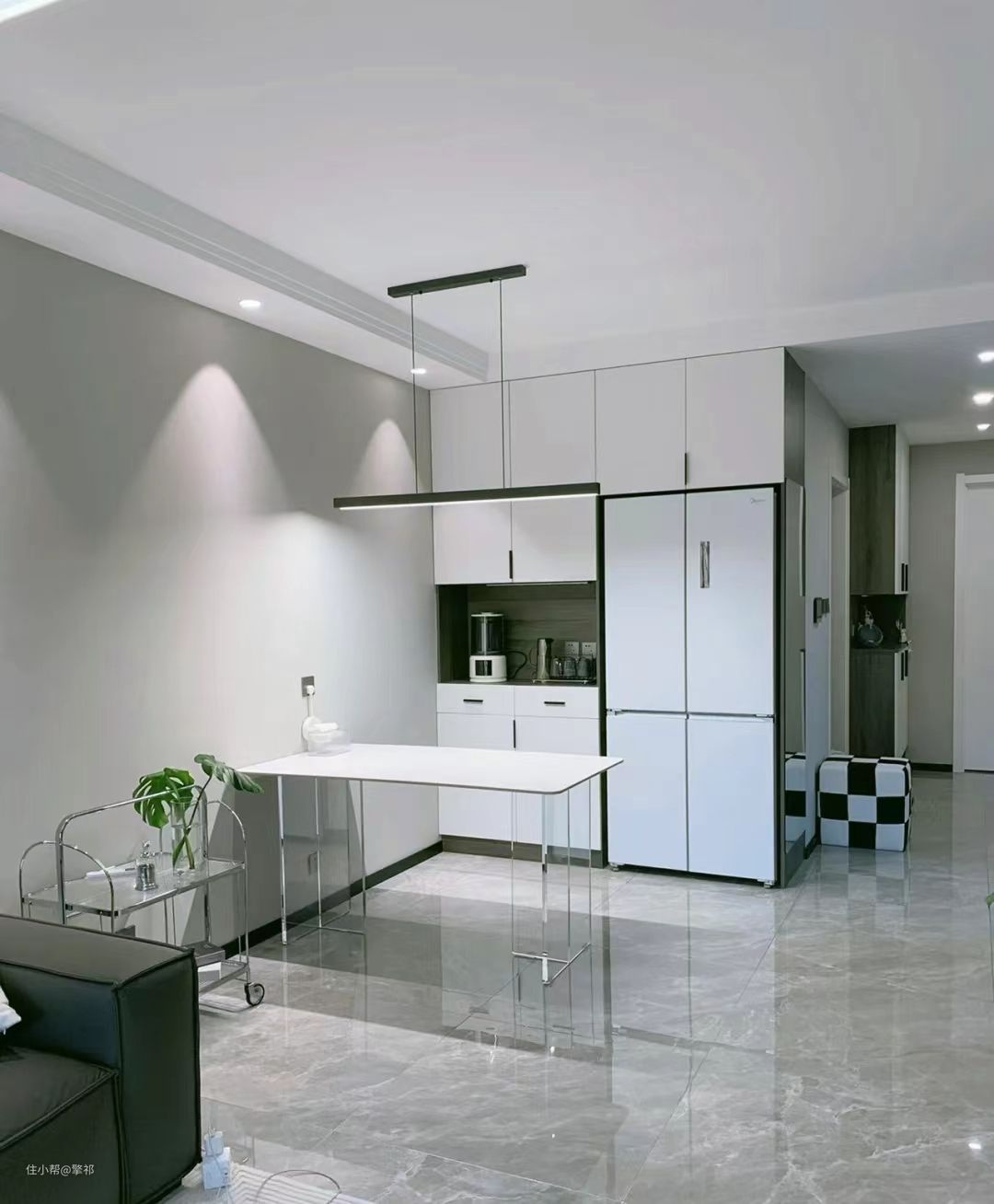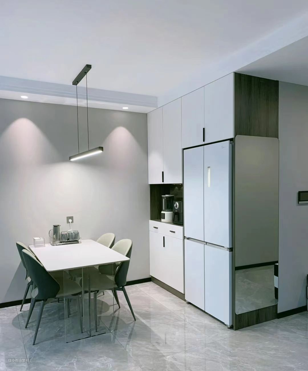 极简餐厅||白色冰箱完美嵌入餐边柜(附尺寸)