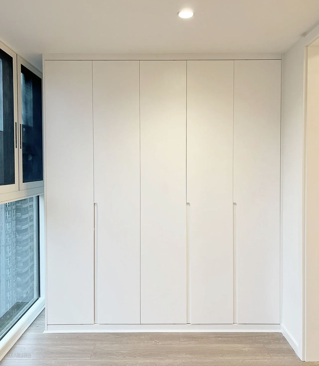 注意,如果家里是纯白色的乳胶漆,一定不要给柜门做成奶白、米白色。