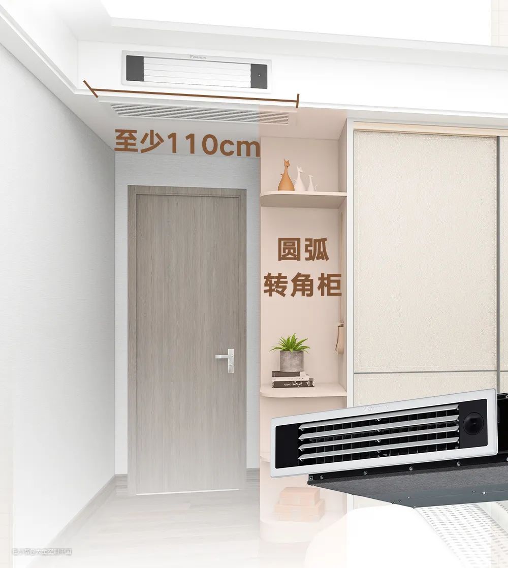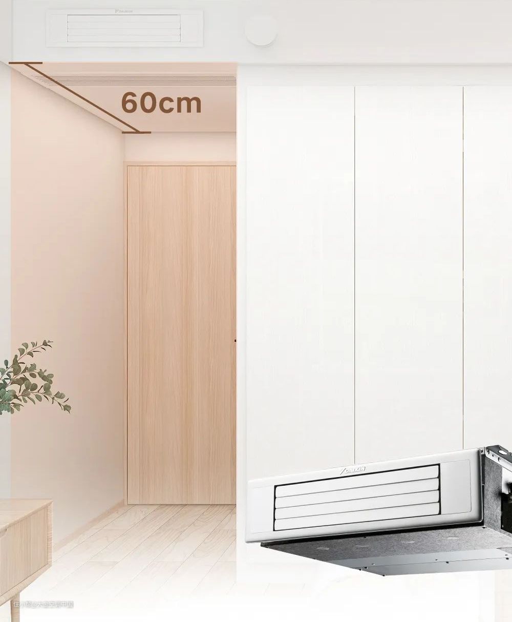 市面上普通衣柜的柜体深度为60厘米(从墙壁到橱门),选择吊顶完成后深度也在60厘米,的中央空调室内机,就可以匹配衣柜深度。