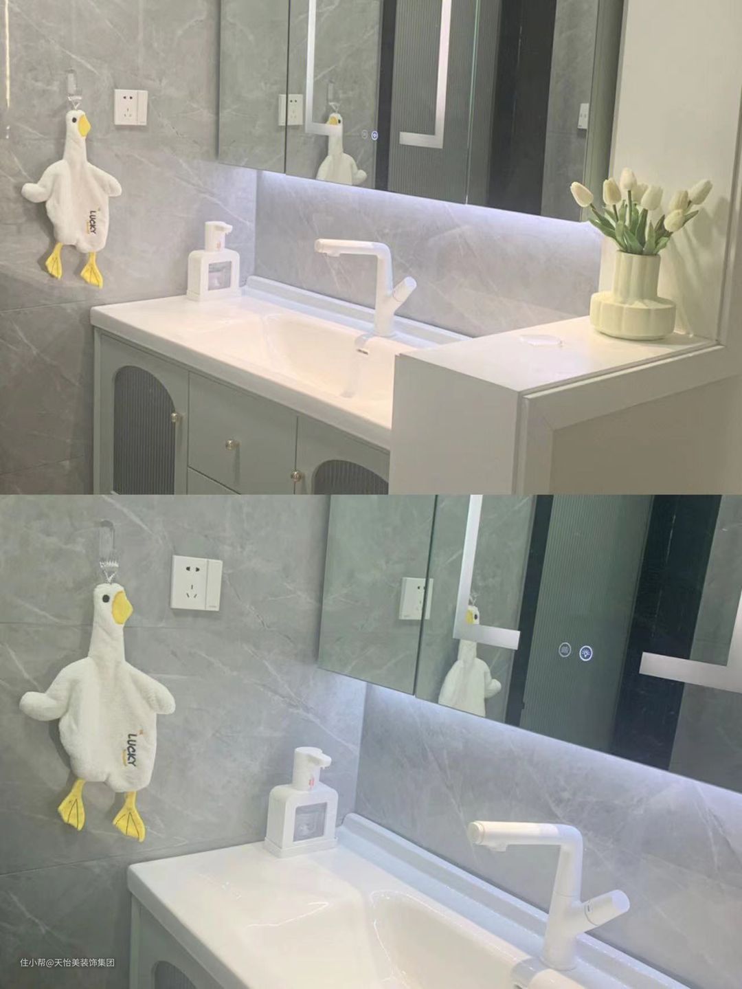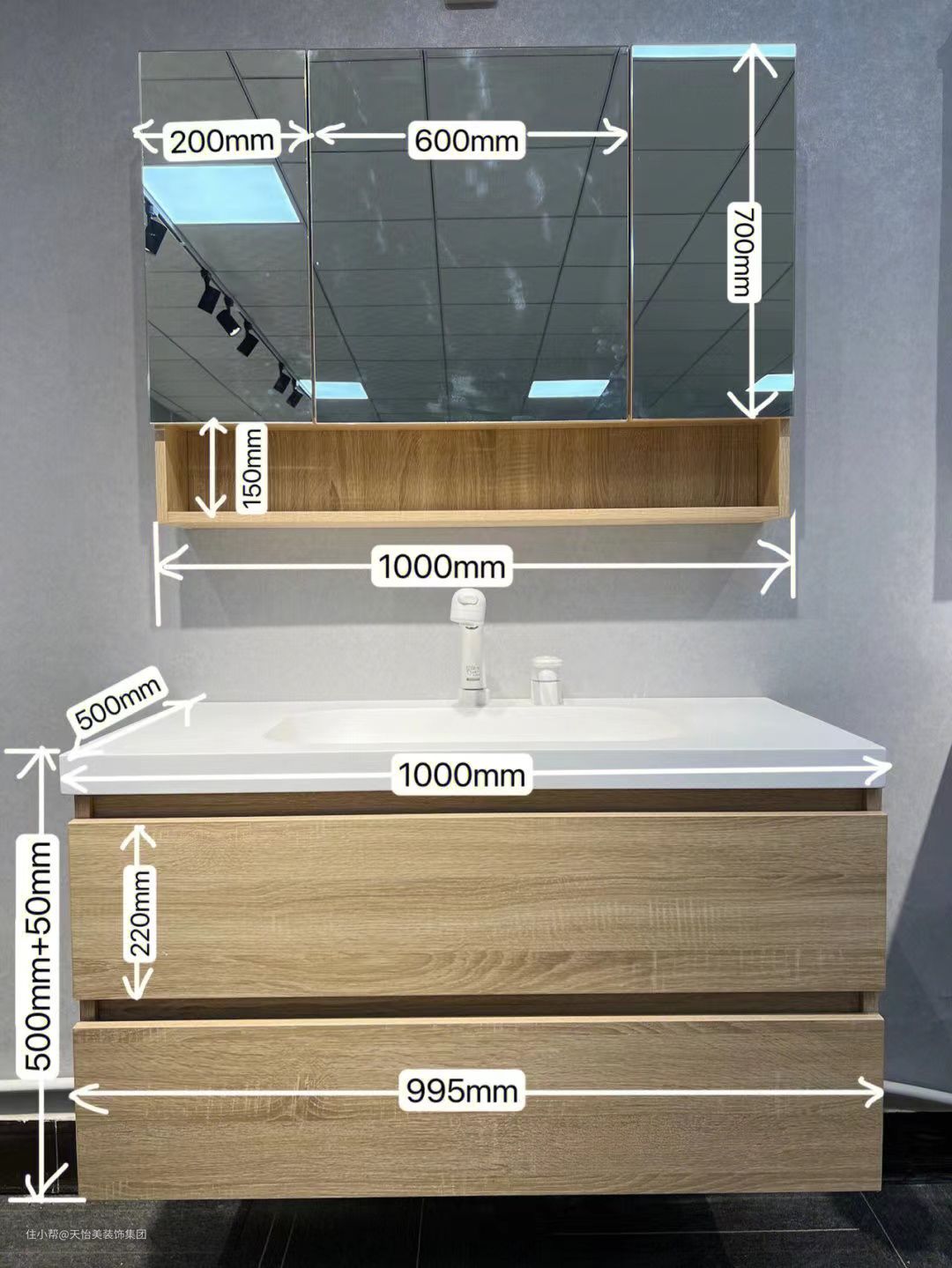 首先是定制款浴室柜,它更能结合业主家的实际情况,根据卫生间的面积大小、风格以及个人喜好来量身定制。
