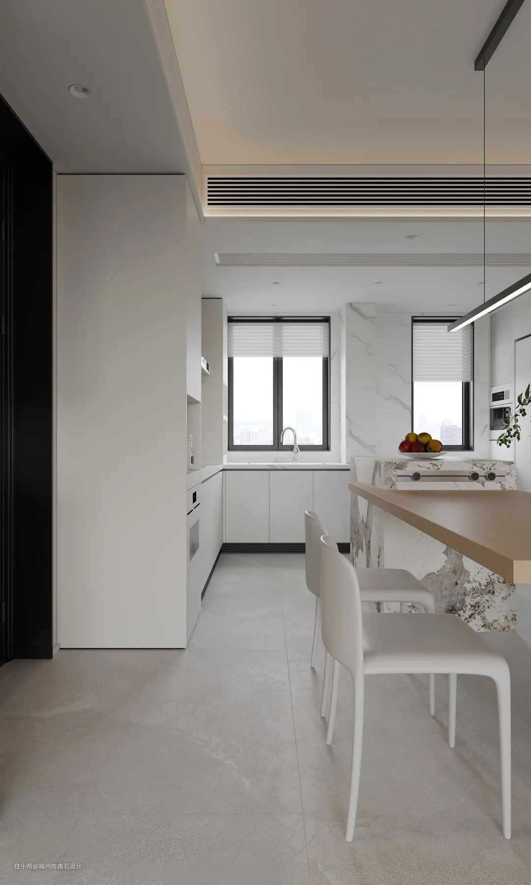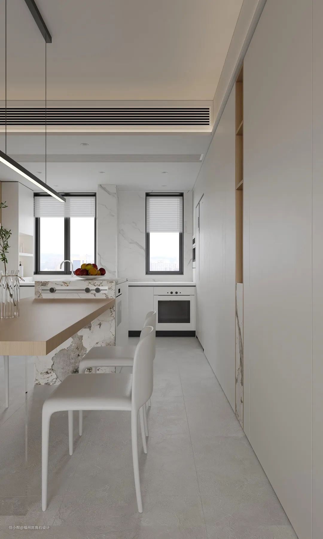 餐厨一体化消融了空间结构上的障碍,使各公共空间有机串联,增加了家人之间的陪伴与互动,生活的烟火气在这里变得简单而惬意。
