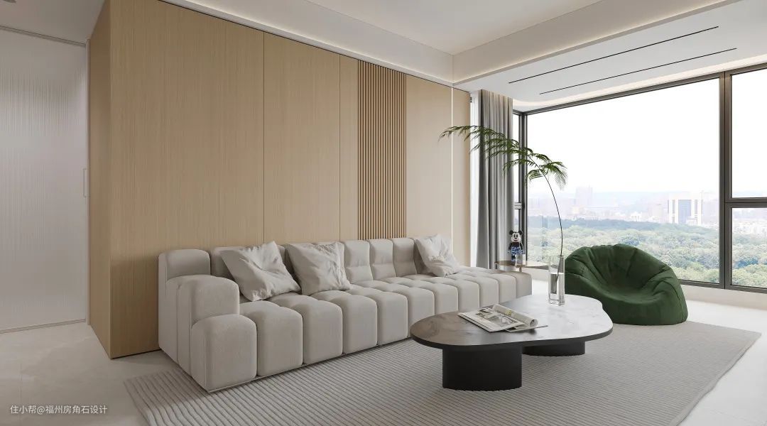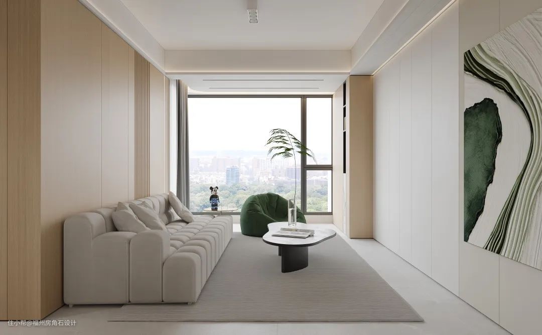 The living room brightens the space color with a clean and plain color system, and a large number of simple lines make the space more elegant and atmospheric.