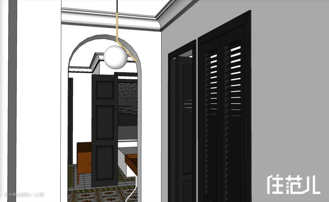 以上,聚焦于拱门本身,但拱门说到底只是家里的一扇门,咱把格局打开,放到整个房间里,还得考虑它的空间协调比。