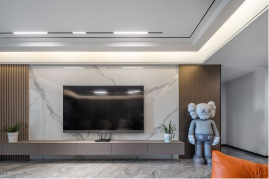 现在大多数客厅都喜欢采用无主灯设计,摒弃了传统大型主灯的繁冗复杂,在吊顶上简单的铺设一些筒灯辅助照明,再在四周点缀一些灯带,增加空间的氛围感,既不压低层高,还能让空间的整体格局更加简约大气。让生活回归简约,简单又不失高级质感。