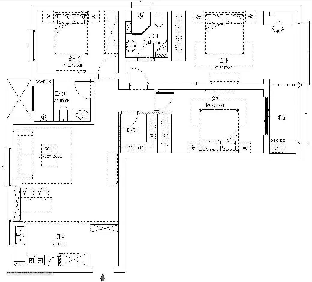 No.4:在原始的户型中,进门无玄关,加上本身就是60方的小户型,对于空间的把握要求比较高。